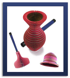 Claiming the vase is the hat, it is placed on the child's head and visibly becomes a comical BEANIE STYLE CAP. Oops the magic isn't working. Must be because the hat is upside down. Magician flips the hat and suddenly it changes into a comical SAFARI HAT. Now the magic works.
